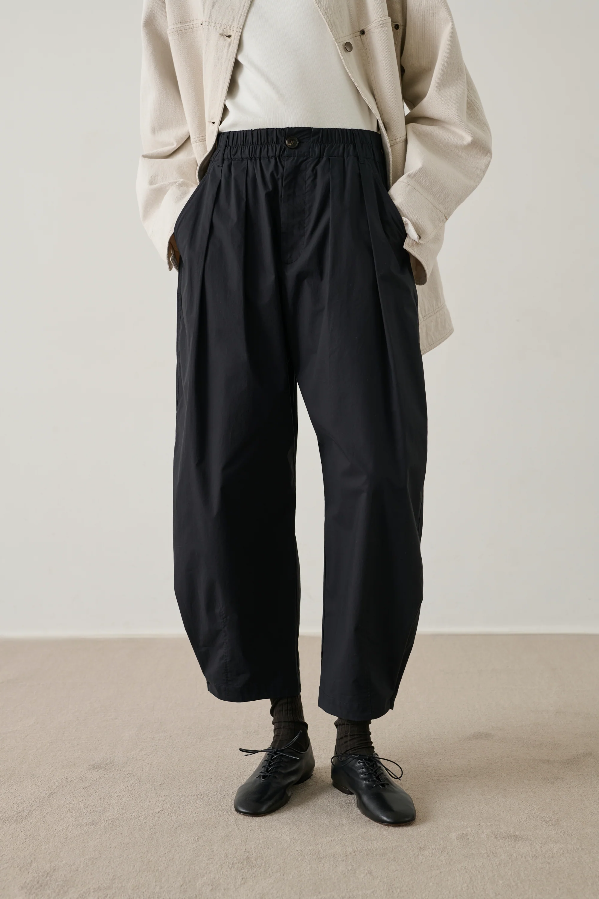 - Loose fit, round and slightly tapered at the bottom of the leg